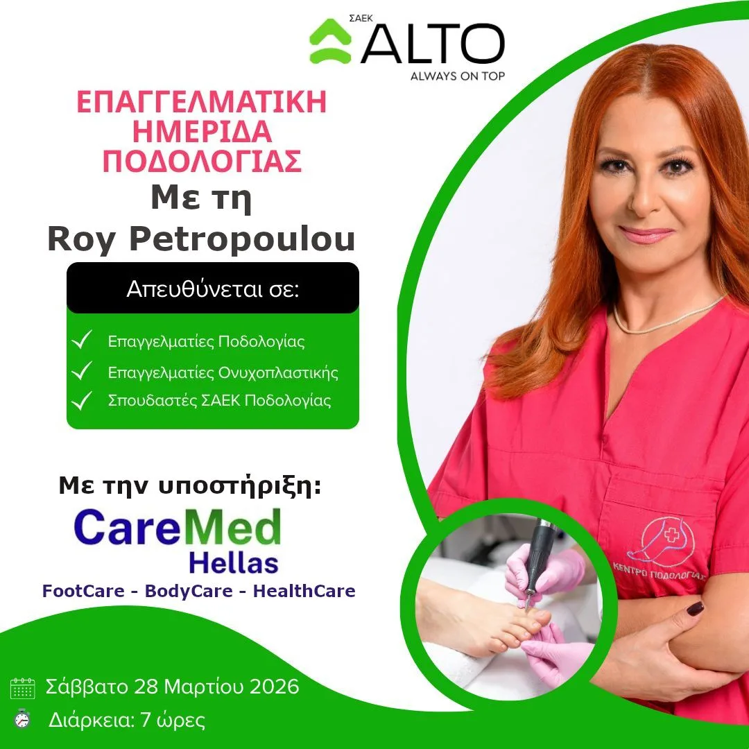 Η Ανώτερη Σχολή ALTO διοργανώνει ένα ολοκληρωμένο Επαγγελματικό Σεμινάριο Ποδολογίας, σχεδιασμένο για όσους επιθυμούν να αναβαθμίσουν ουσιαστικά τις γνώσεις και τις δεξιότητές τους στη σύγχρονη φροντίδα ποδιών.